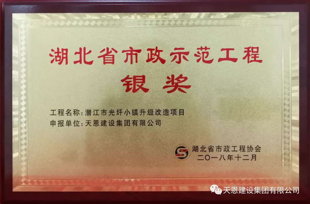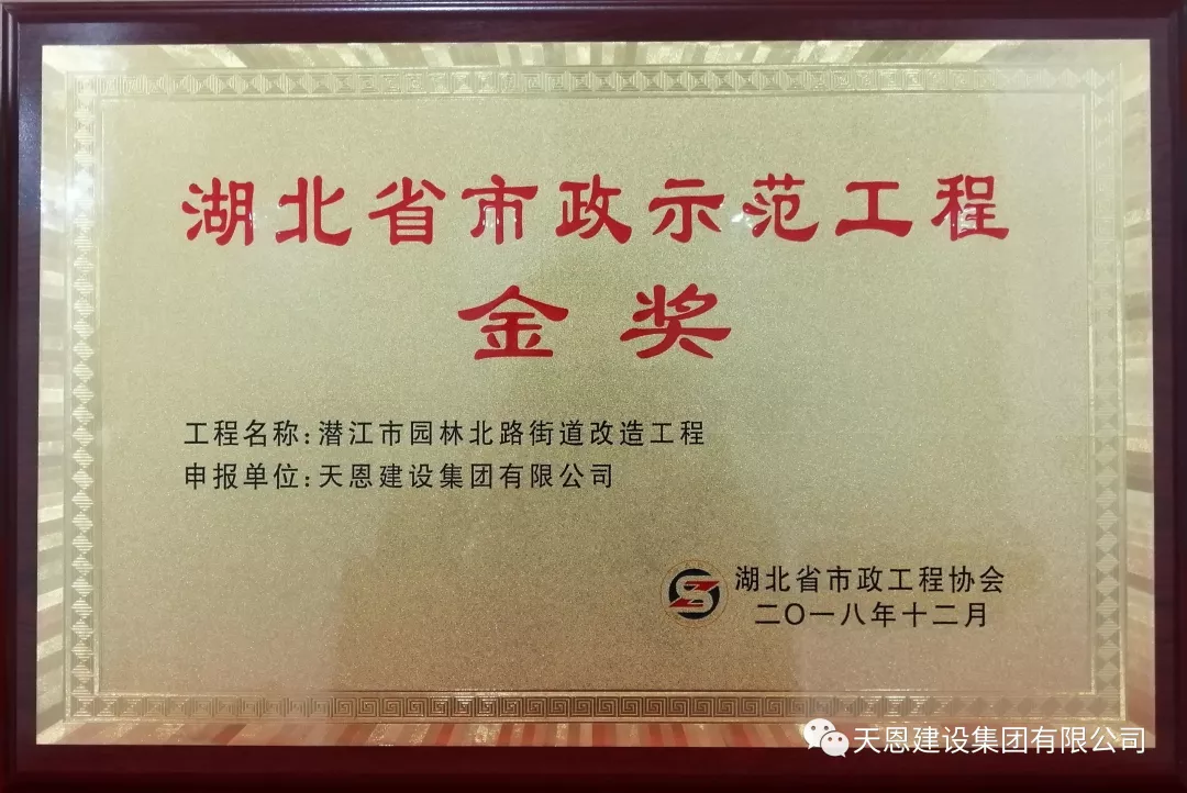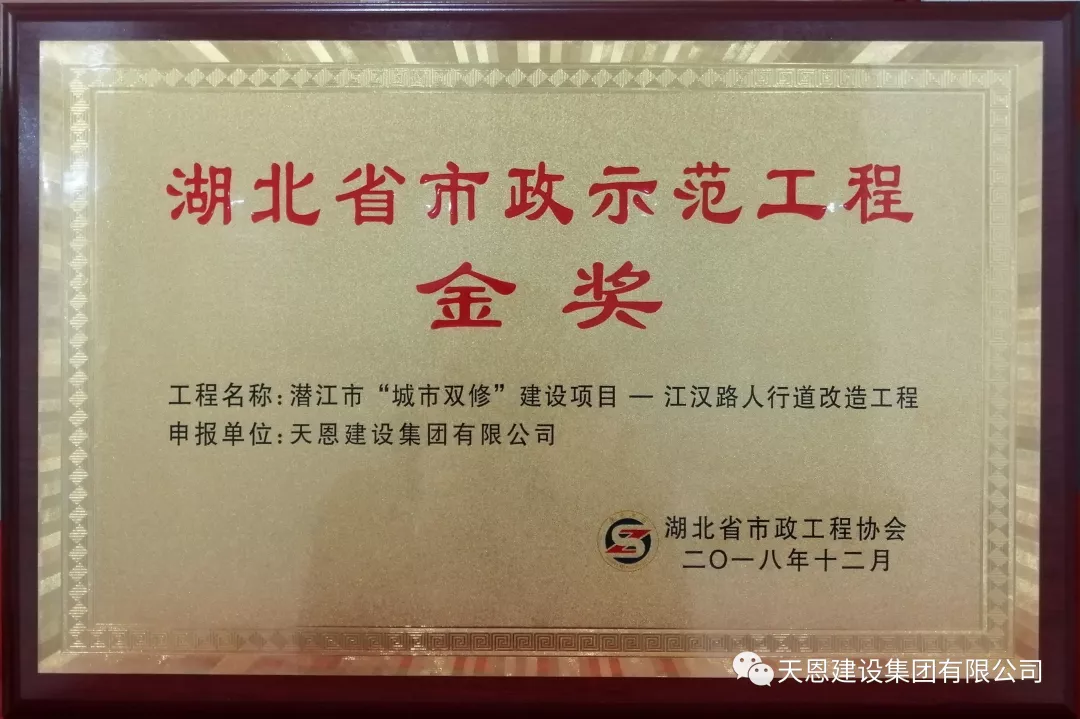近日,天恩建設集團有限公司喜迎開門紅。在“2018年度湖北省市政示范工程”評選活動中,經評委會層層篩選,認真評審和公示后,我公司攬獲兩金一銀。