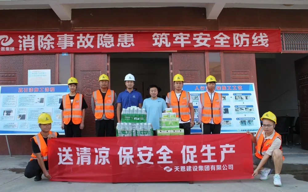 時值盛夏,驕陽似火,頂著烈日奮戰在一線的員工們一直牽掛著領導們的心。8月6日,天恩建設集團有限公司工會領導深入一線開展“送清涼 保安全 促發展”慰問活動。